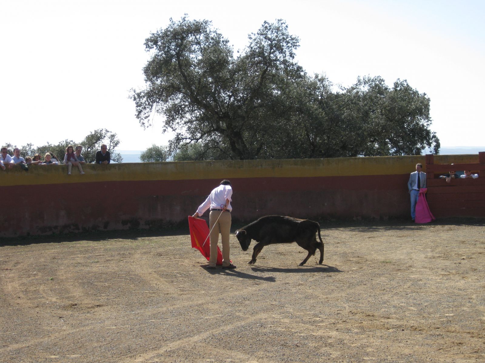Alguno no se conformó con estar detrás del burladero y saltó al ruedo. Este fue el caso del "Niño de la Fiesta" (nuestro vocal Juanjo Coca), que nos demostró sus avances con la muleta ...